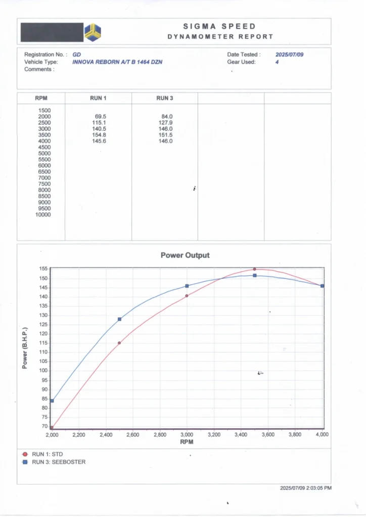 Data Before dan After dilakukan melalui dyno test di Sigma Speed Gunung Putri.